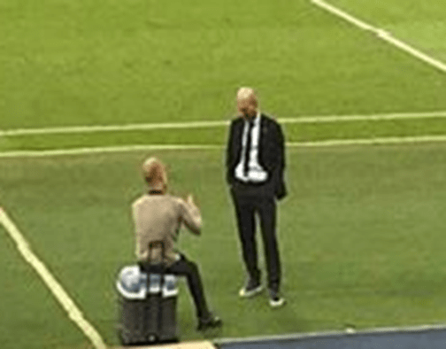 Όμως αυτό που συζητείται σήμερα (και κατά την εκτίμηση μου θα μείνει στην ποδοσφαιρική ιστορία) ήταν το γεγονός, ότι οι 2 μεγάλοι προπονητές (Γκουαρντιόλα & Ζιντάν) με το τελευταίο σφύριγμα, συναντήθηκαν και πέραν της τυπικής χειραψίας, για περίπου 8 λεπτά, είχαν μια ιδιωτική συνομιλία. Στην καθιερωμένη δε συνέντευξη τύπου, ερωτηθείς ο Γκουαρντιόλα, απάντησε ««Του έδωσα συγχαρητήρια για το πρωτάθλημα και τον ρώτησα για την οικογένειά του. Ας ελπίσουμε ότι μια μέρα θα μπορέσουμε να δειπνήσουμε μαζί και θα έχουμε την ευκαιρία να μιλήσουμε για τα πάντα».