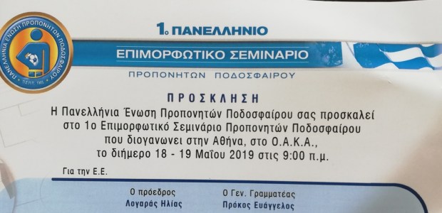 Οι διπλωματούχοι προπονητές όλων των κατηγοριών (UEFA A, UEFA B, UEFA C) καλούνται όπως προβούν άμεσα στην έκδοση της νέας ταυτότητας τριετίας τους για την περίοδο 2019-2021. Οι προηγούμενες ταυτότητες έχουν λήξει από τις 31-12-2018.